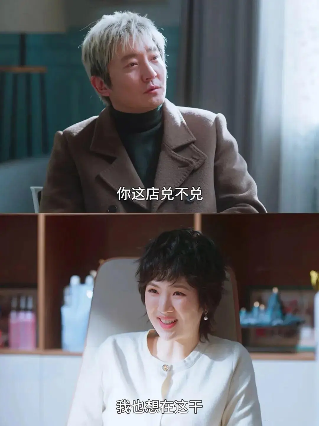 郭京飞与姚安娜演绎盘店的环节,郭想兑姚开的美容店,放话不管多少钱都要盘下来开饭店,姚一边婉拒一边说“我家里也不缺钱,我就爱干这个”